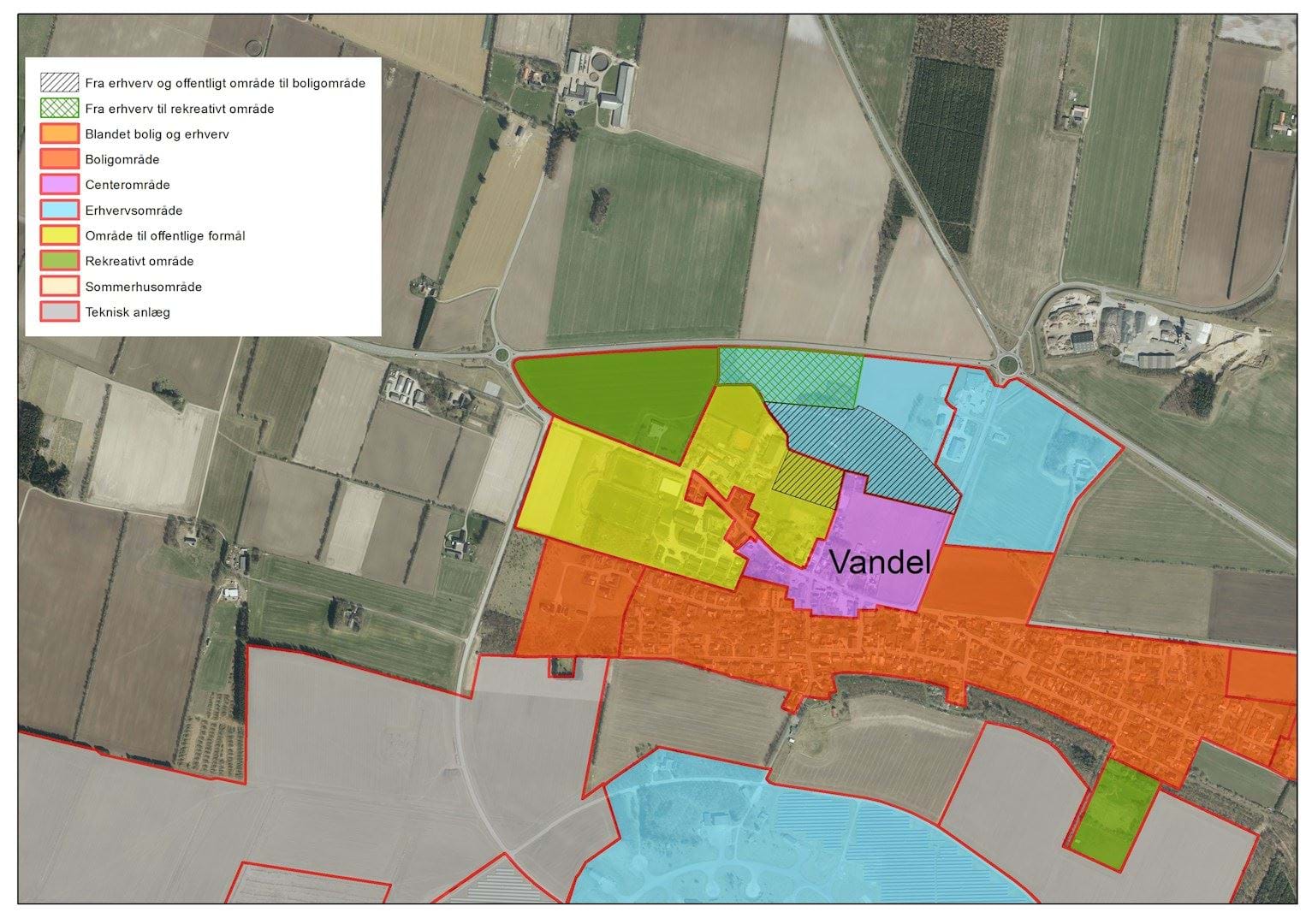 Vandel Lokalråd har foreslået, at arealanvendelsen for dele af kommuneplanrammerne 22.E.3 og 22.O.1 ændres til boligramme og rekreativ ramme til skov. Forslaget udspringer af landsbyvisionen for Vandel, som lokalsamfundet har lavet og som indeholder ønsker om at skabe mødesteder, byforskønnelse og nye boformer.