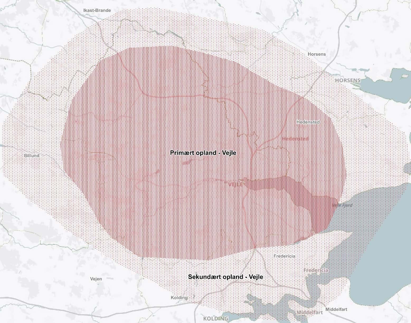 Det primære opland til Vejle Midtby vurderes at være Vejle kommune samt det østlige Hedensted kommune og det vestligste Billund kommune.