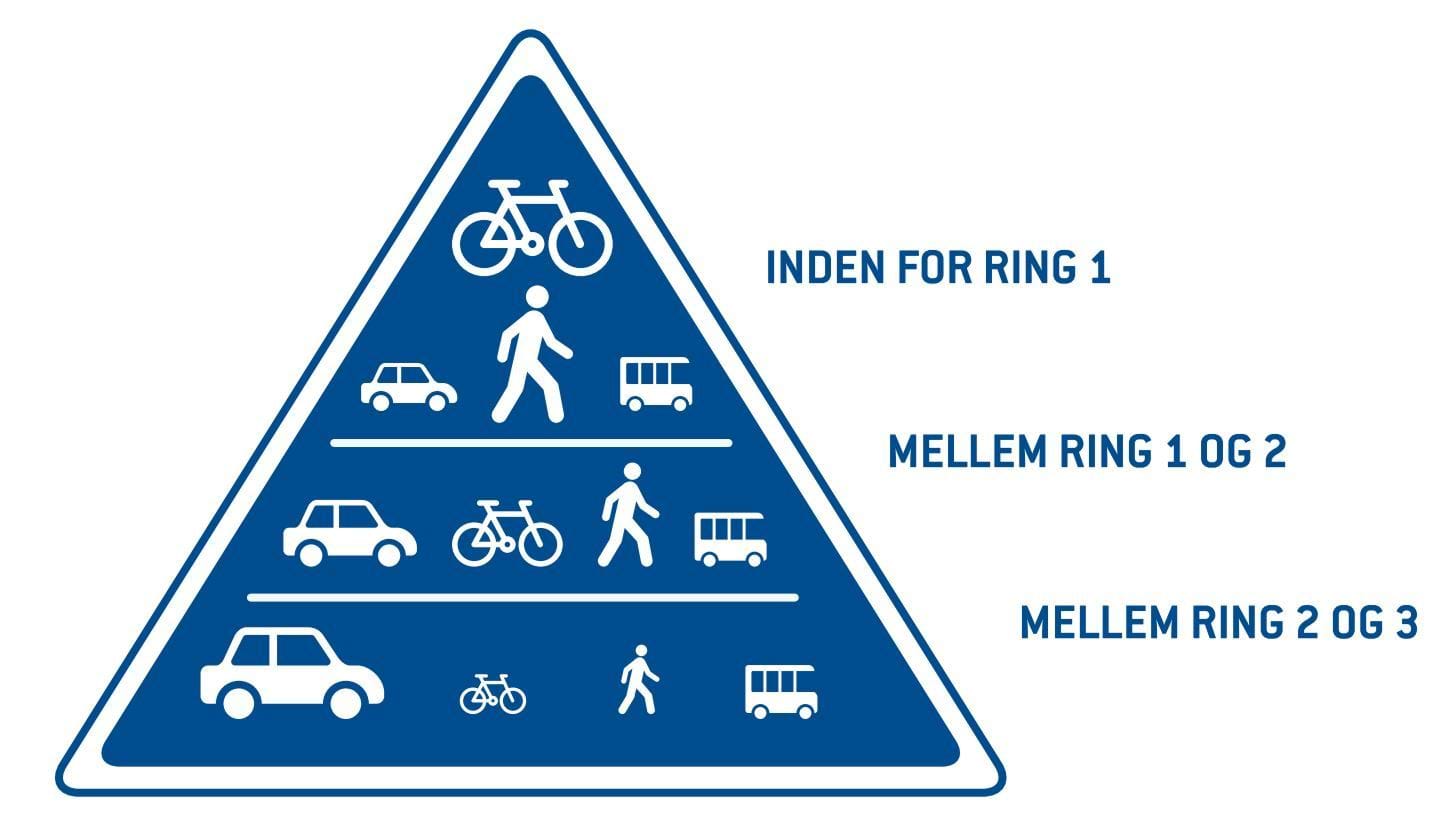 Figur - mobilitetstrekanten og prioriterede transportformer